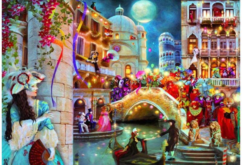 A francia Bluebird 2019 óta van jelen a kirakók világpiacán. Magas minőségű, környezettudatos technológiával készült, mégis megfizethető áron elérhető puzzle képei közt elsősorban művészi alkotások találhatók. Az 1000 db-os Bluebird puzzle - Carnival Moon című képén Aimee Stewart művét láthatjuk. Egy éjszaka Velencében, a karnevál idején: zene és tánc, álarco