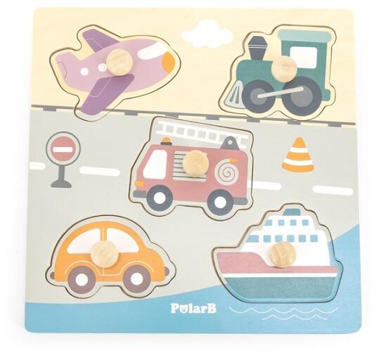 Kellemes pasztell színvilágú 5db-os járműves puzzle amit 1 éves kortól ajánlunk. A kicsinek a járműveket a fogantyú segítségével vissza kell helyezni az alaplap megfelelő helyére. Fontos, hogy a megfelelő helyre rakja a puzzle darabot, mivel más helyre nem fog passzolni az. Nagyszerűen fejleszti a szem-kéz koordinációt, megtaníthatod gyermekednek a különböző járműveket