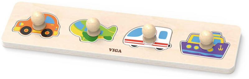 Gyönyörű fogantyús formaberakó puzzle Viga vidám képekkel. A puzzle játék jó hatással van a kombinációs készségre, az emlékezetre, fejleszti a térlátást és a probléma megoldáshoz szükséges készségek elsajátítását. A játék lakkozott fából készült. Kiemelt fontosságúnak tartjuk a biztonságot és minőségét a termékeinket, így a használt festék a játékok