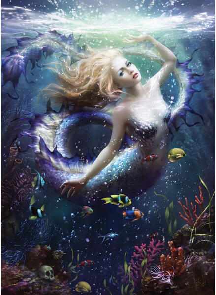 A kanadai Cobble Hill a nosztalgikus, színes, és mindemellett kiváló minőségű kirakókkal kívánja örvendetessé tenni a játék élményt kicsiknek és nagyoknak egyaránt. A Cobble Hill 1000 db-os puzzle - Onde című képen egy csodás sellőlány látható.
