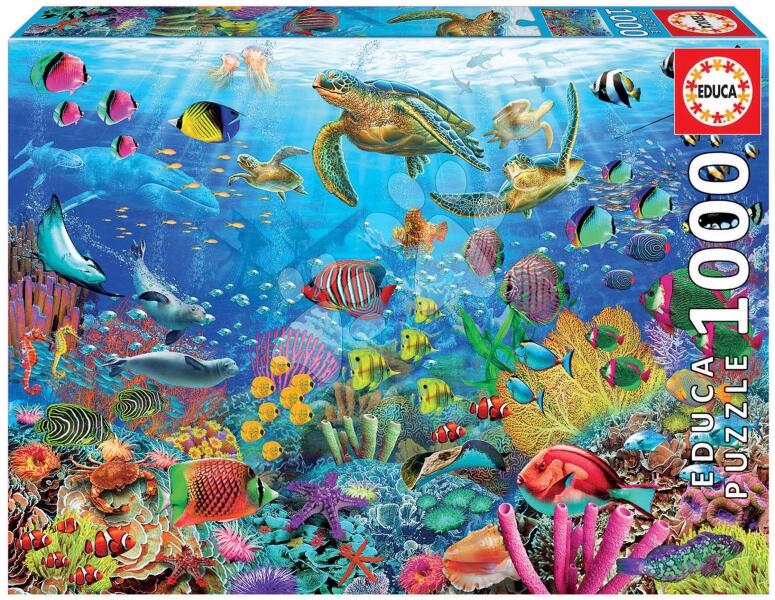 Puzzle gyermekek és felnőttek részére természetes Tropical Fantasy Turtles motívummal a spanyol Educa vállalat műhelyéből nagy örömet szerez a képkirakó szerelmeseinek, hiszen a csodálatos tengeralatti világot tárja elénk. A csomagolás 1000 db puzzle elemet tartalmaz. A puzzle gyermekek vagy felnőttek részére darabjainak megfelelő helyre illesztése egységes képet alkot. A