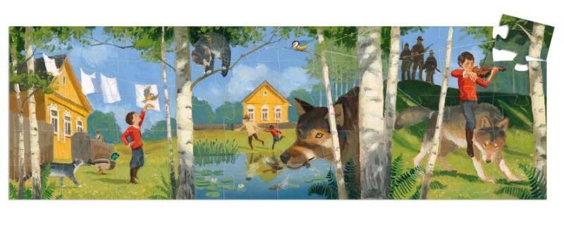 Péter és a farkas, formadobozos puzzle. A gyermek egy nagy képet rak ki a puzzle-ből és illusztrálva látja Péter és a farkas híres meséjét. Ezt a gyönyörű, 50 darabos kirakós játékot vonzó sziluettű dobozban mutatjuk be. Tartalma: 50 darabos karton puzzle (62 x 20 cm) A doboz méretei: 27 x 21 x 6 cm Péter és a farkas Prokofjev gyermekeknek írt szimfonikus meséje