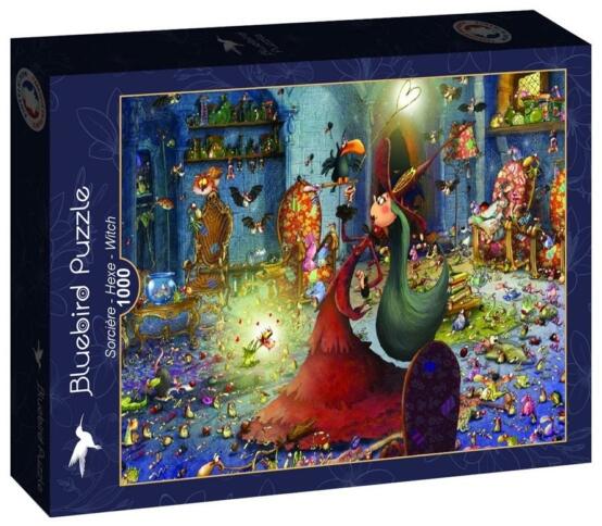 A francia Bluebird vállalat 2019-ben lépett piacra kiváló minőségű kirakóival, megfizethető áron. Fontos szempont számukra a környezettudatosság is, ezért kirakóik dobozait úgy tervezték, hogy minimális mennyiségű kartont használjanak fel a gyártás során. A Bluebird 1000 db-os puzzle - Sorcière - Hexe - Witch című képén egy boszorkány varázslatokkal teli házában ta