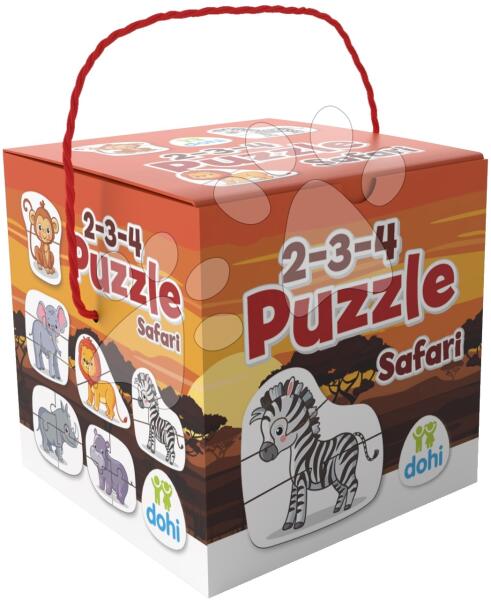 Puzzle legkisebbeknek Safari a Dohány vállalat műhelyéből egy igazán kiváló ajándék minden kisfiúnak és kislánynak már 18 hónapos kortól. Legkisebbeknek szánt puzzle szafarin élő állatok ábráját adja ki, melyek 2, 3 és 4 elemből állnak. Vadállatos puzzle elemei nagyobb méretekkel rendelkeznek, így a velük való manipuláció is könnyebb a kicsik számára. Puzzle min