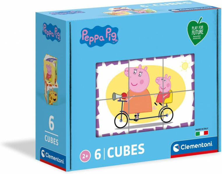 Peppa Malac 6 db-os mesekocka . Peppa Malac már szinte az egész világot meghódították, biztos a Te kisgyermeked is szereti. A gyerkőcök többféle képet rakhatnak ki a kockákból, mindegyik oldalon egy-egy izgalmas részletet láthatnak. A legkisebbek is könnyedén kézbe vehetik. A puzzle összeállítása során fejlődik a koncentrációs készség, a kézügyesség, és a memória.