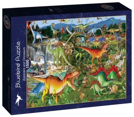 A francia Bluebird vállalat 2019-ben lépett piacra kiváló minőségű kirakóival, megfizethető áron. Fontos szempont számukra a környezettudatosság is, ezért kirakóik dobozait úgy tervezték, hogy minimális mennyiségű kartont használjanak fel a gyártás során. A Bluebird 1500 db-os puzzle - Explorers and Dinosaurs című képe egy nagyon izgalmas helyszínre kalauzolja kirakój