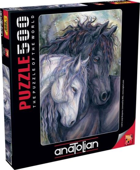 Az Anatolian folyamatosan figyelemmel kíséri az új technológiákat, puzzle alapanyagforrásokat, a modern művészeti koncepciókat és a fogyasztók ízlését. Ennek alapján minden korosztály számára megfelelő kirakókat gyárt. Az Anatolian 500 db-os puzzle - Kindred spirits című képén a lelki társ vadlovakat láthatjuk.