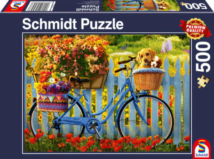 A Schmidt puzzle kiváló minőségű, német gyártmányú kirakó. A speciális matt lakk felhasználás következtében a kirakók fényvisszaverődés nélkül tárják elénk a szebbnél szebb képeket. A Schmidt 500 db-os puzzle - Sunday outing with good friends című képén egyszerűen elveszünk a virágok szépségében és a két kutyus csillogó tekintetében. Idili környezet egy vas