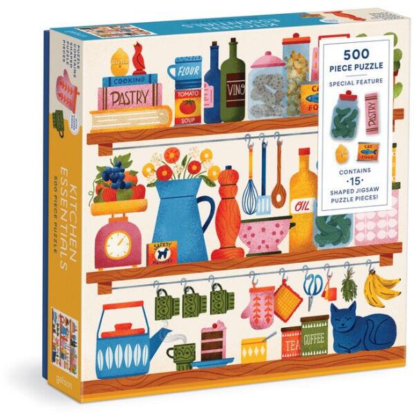 500 darabos kirakó Különleges, rejtett formákat tartalmazó kirakó! Márka: Galison Művész: Muti Kirakott kép méret: 50,8 x 50,8 cm Doboz méret: 20,3 x 20,3 x 3,8 cm Eredeti cím: Kitchen Essentials GTIN: 9780735374966