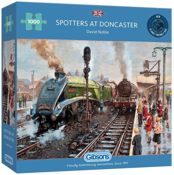 1000 darabos kirakó . Márka: Gibsons Művész: David Noble Kirakott kép méret: 68 x 49 cm Doboz méret: 24 x 24 x 6 cm Eredeti cím: Spotters at Doncaster GTIN: 5012269063172