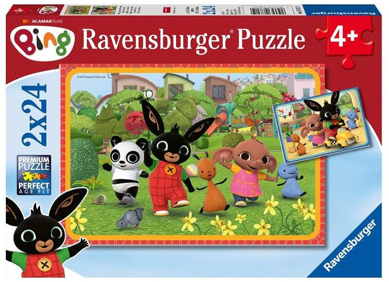 Nézze csak Bing milyen felszabadultan játszik barátaival, akiket gyermeke a népszerű rajzfilmsorozatból ismerhet. A kedves karaktereket megjelenítő Ravensburger 07821 puzzle - Bing és barátai csomagban kettő , egyenkén t 24 alkotóelemből álló kirakó összeállítása elképesztő fejlődési lehetőség et kínál a kicsiknek a logikus gondolkodás , a kézügyesség és a kreativ