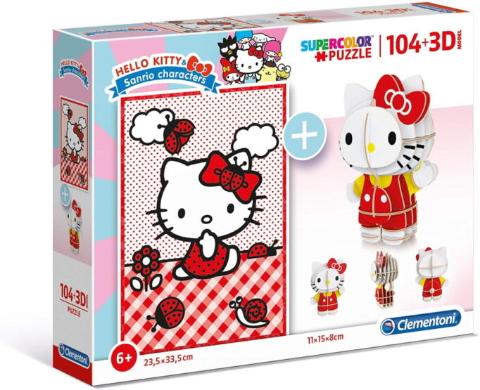 Clementoni: Hello Kitty 2 az 1-ben 104db-os puzzle és modell figura Hivatalos magyarországi forgalmazótól. Leírás: Ha egy igazán nagyszerű és szórakoztató játékszettet szeretnénk gyermekünknek, akkor ez a 2 az 1-ben puzze és figura modell biztosan elnyeri majd a tetszését. A csomagban egy 104db-os hagyományos Hello Kitty puzzle kirakó található, mely szórakoztató időtölt