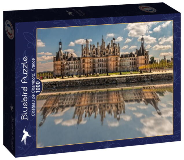 A francia Bluebird 2019 óta van jelen a kirakók világpiacán. Magas minőségű, környezettudatos technológiával készült, mégis megfizethető áron elérhető puzzle képei közt elsősorban művészi alkotások találhatók. Az 1000 db-os Bluebird puzzle - Chateau de Chambord, France képén a Loire-völgyében található 16. századi, reneszánsz stílusban épült Chambord-i kastély