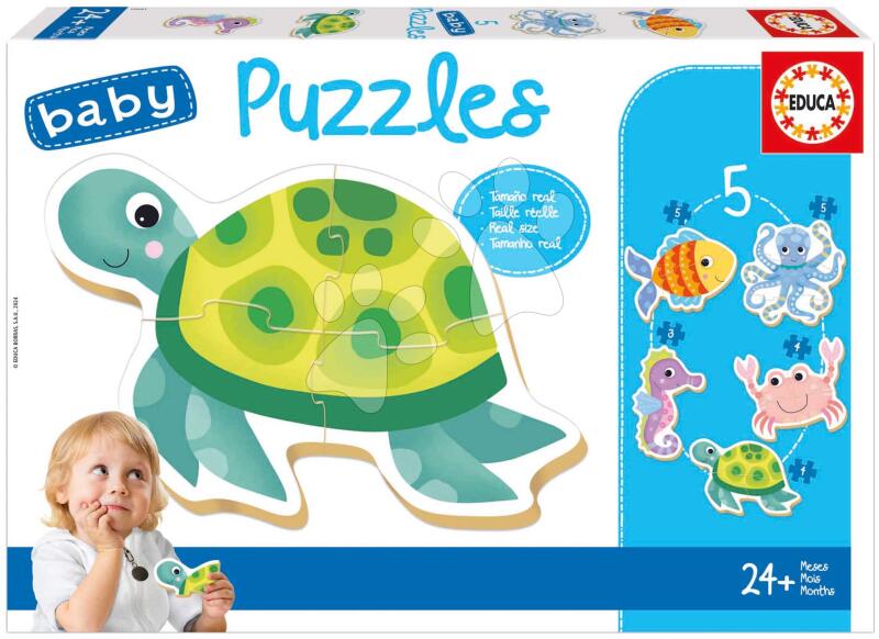 Puzzle legkisebbeknek a spanyol Educa műhelyéből örömet szerez minden gyerkőcnek 2 éves kortól. Az ábrákon tengeri élőlények láthatóak. A puzzle 21 darabból áll. Puzzle legkisebbeknek kirakása után 5 képet jelenít meg. Puzzle minőségi anyagból készült. Megfelel a biztonsági előírásoknak, tehát biztonságos játék a kicsik számára. Ez a puzzle kicsiknek szép, vid