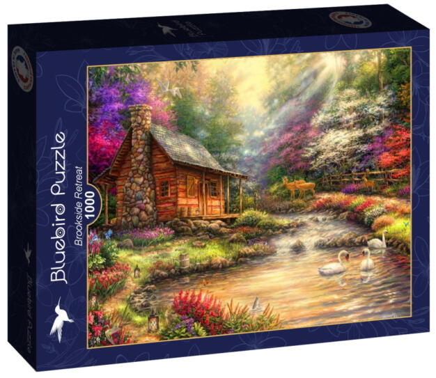 A francia Bluebird 2019 óta van jelen a kirakók világpiacán. Magas minőségű, környezettudatos technológiával készült, mégis megfizethető áron elérhető puzzle képei közt elsősorban művészi alkotások találhatók. Az 1000 db-os Bluebird puzzle - Brookside Retreat című képén Chuck Pinson művész gyönyörű ábrázolásában egy idilli, színekben gazdag erdő jelenik meg