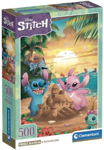 Disney Lilo és Stitch, A csillagkutya puzzle 500 db-os Clementoni Mérete: 36x49 cm Doboz mérete: 34.4 x 25.4 x 4.6 cm - kiváló minőség - poszter mellékelve - 10 éves kortól ajánlott