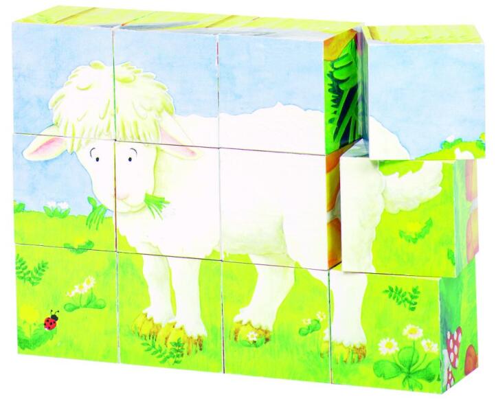 Fa mesekocka, 3x4 db-os A fa mesekocka 12 kocka elemét forgatva aranyos állatkölykök képeit állíthatjuk össze. Anyaga: fa Méret: 14 x 10,5 x 3,5 cm