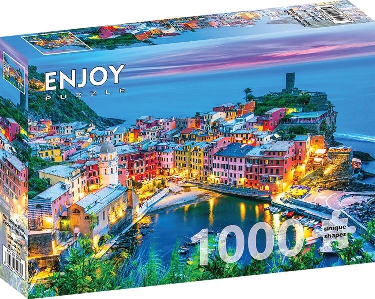 1000 darabos kirakó Új, 2023-as megjelenés! Márka: Enjoy Művész: nincs infó Kirakott kép méret: 68 x 48 cm Doboz méret: 33,5 x 23 x 5 cm Eredeti cím: Vernazza at Dusk, Dolomites, Italy GTIN: 5949194020805