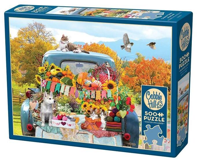 A kanadai Cobble Hil l a nosztalgikus, színes, és mindemellett kiváló minőségű kirakókkal kívánja örvendetessé tenni a játék élményt kicsiknek és nagyoknak egyaránt. A Country Truck in Autumn - 500 db-os kirakón egy igazi őszi, színekkel teli kép található. Tele van gyönyörű virágokkal, imádni való cicákkal, madárkákkal és kutyussal. A puzzle őszi hangulata magá
