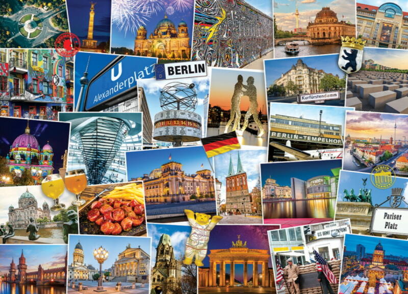 Az Eurographics 1000 db-os puzzle - Globetrotter, Berlin című képen Berlin híres épületeiből és a városra jellemző nevezetességekről készül kollázs látható. Az Eurographics gyártó nagy figyelmet fordít a környezettudatos működésre, úgy a termékeik előállításánál, mint a dolgozóik környezetbarát gondolkodásra való ösztönzésénél. Tegyünk érte, hogy ezeket