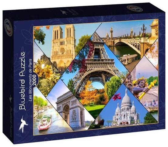 A francia Bluebird 2019 óta van jelen a kirakók világpiacán. Magas minőségű, környezettudatos technológiával készült, mégis megfizethető áron elérhető puzzle képei közt elsősorban művészi alkotások találhatók. A 2000 db-os Bluebird puzzle - Les Monuments de Paris című képén Párizs nevezetességei láthatóak, többek között a Notre Dame, az Eiffel-torony és a Diada