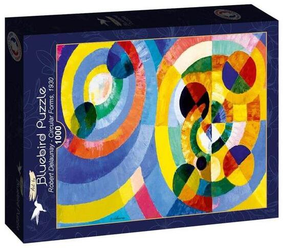 A francia Bluebird 2019 óta van jelen a kirakók világpiacán. Magas minőségű, környezettudatos technológiával készült, mégis megfizethető áron elérhető puzzle képei közt elsősorban művészi alkotások találhatók. Az 1000 db-os Bluebird puzzle - Robert Delaunay - Circular Forms 1930 című képén Robert Delaunay, francia festő absztrakt, színekben gazdag művét láthatjuk.