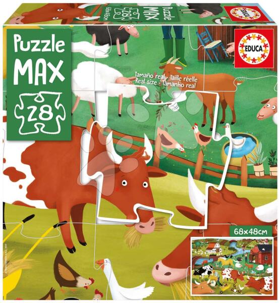 Puzzle MAX Farm egy igazán csodás ajándék minden gyerkőc részére 3 éves kortól, akik szeretnek képkirakózni. A képkirakó elemeiből farmon élő állatok ábrája állítható össze. A kirakós csomag 28 nagy darabot tartalmaz, amelyek segítségével a gyerekek könnyedén összeállíthatnak egy 68*48 cm-es képet. A puzzle első osztályú kartonból készült. Megfelel a biztons