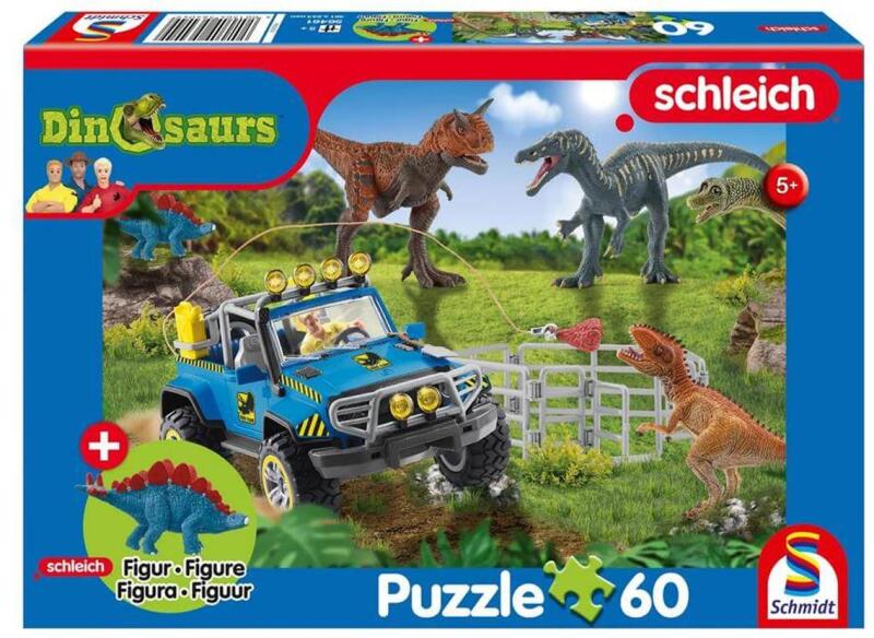 A Schmidt puzzle kiváló minőségű, német gyártmányú kirakó. A speciális matt lakk felhasználás következtében a kirakók fényvisszaverődés nélkül tárják elénk a szebbnél szebb képeket. A Schmidt Schleich Prehistoric giants 60 db-os puzzle kirakott képén egy bátor kis fickót láthatunk, amint a vagány terepjárójából őskori dinoszauruszokat etet. A gyerekeknek kész