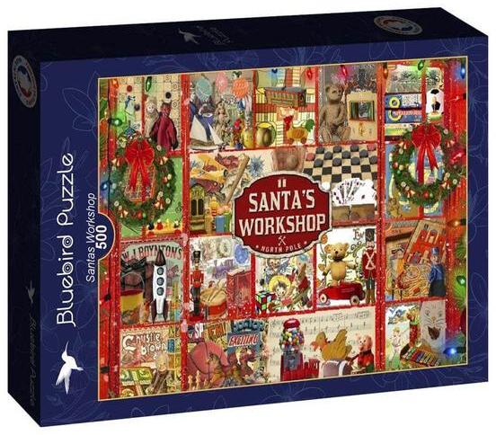 A francia Bluebird 2019 óta van jelen a kirakók világpiacán. Magas minőségű, környezettudatos technológiával készült, mégis megfizethető áron elérhető puzzle képei közt elsősorban művészi alkotások találhatók. Az 500 db-os Bluebird puzzle - Santas Workshop nosztalgikus hangulatú képén a Mikulás műhelyébe nyerhetünk betekintést, ahol szebbnél szebb játék várja,