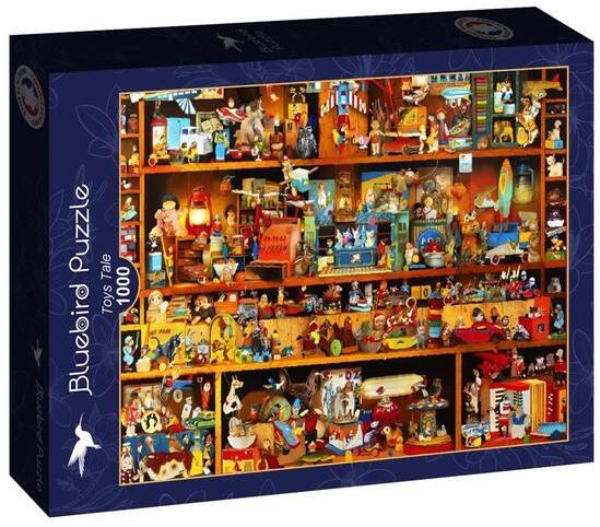 A francia Bluebird vállalat 2019-ben lépett piacra kiváló minőségű kirakóival, megfizethető áron. Fontos szempont számukra a környezettudatosság is, ezért kirakóik dobozait úgy tervezték, hogy minimális mennyiségű kartont használjanak fel a gyártás során. A Bluebird 1000 db-os puzzle - Toys Tale című képén egy óriási polcnyi játék mesél különleges történeteket.