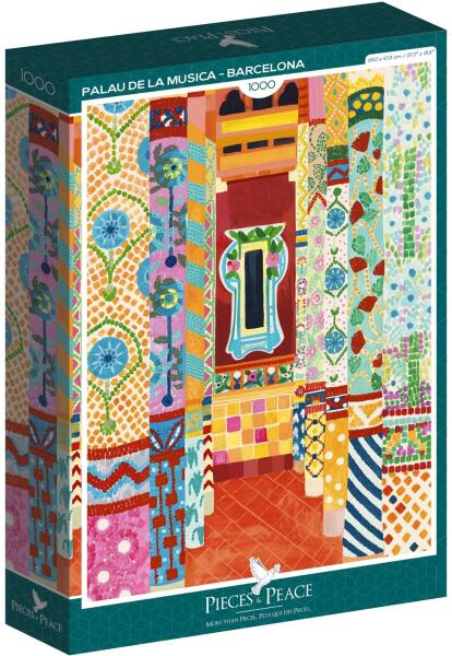1000 darabos kirakó . Márka: Pieces & Peace Művész: Hebe Studio Kirakott kép méret: 47.8 x 69 cm Doboz méret: 35,5 x 24 x 5,5 cm Eredeti cím: Palau de la Musica - Barcelona GTIN: 3770001400372