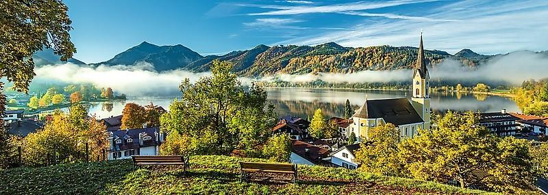 Panoráma puzzle Schlier tónál 1000db-os - Trefl Hivatalos magyarországi forgalmazótól. Leírás: A németországi Schlier tó festői szépségét csodálhatod meg ha kirakod ezt az ezer darabos puzzle-t ami a fenyőkkel és hegyekkel körülölelt tavat ábrázolja. A hosszúkás tájolású kép kifejezetten a panoráma hatás miatt lett így kialakítva, így a kirakott kép nem csak szé
