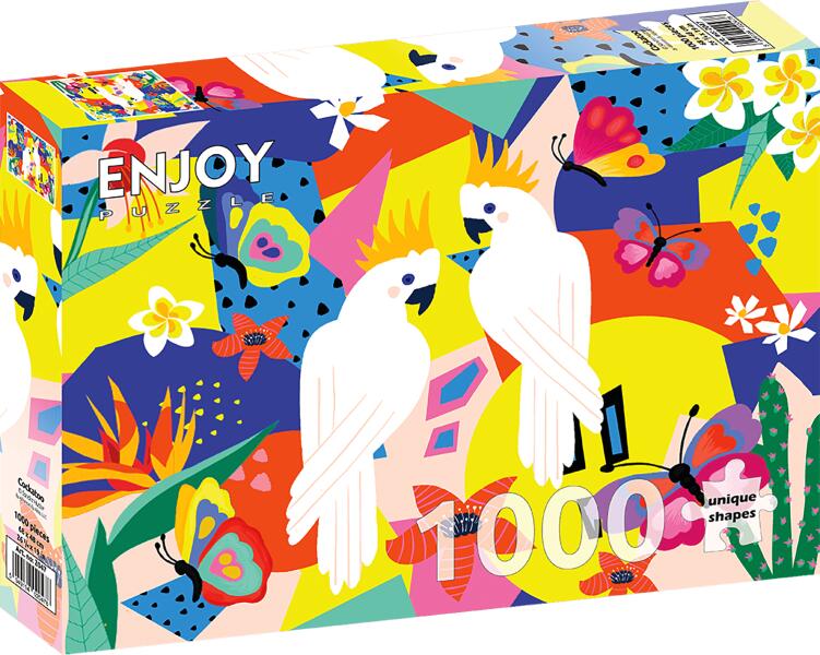 1000 darabos kirakó Új, 2023-as megjelenés! Márka: Enjoy Művész: Sandra Hutter Kirakott kép méret: 68 x 48 cm Doboz méret: 33,5 x 23 x 5 cm Eredeti cím: Cockatoo GTIN: 5949194020478