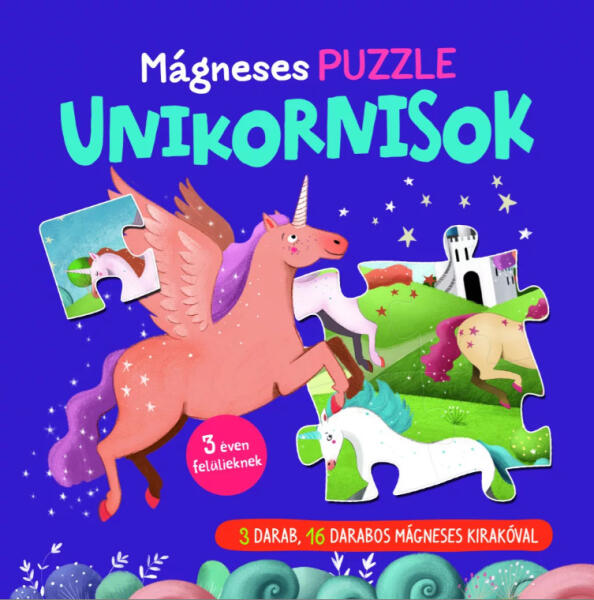 Lépj be az unikornisok csodálatos világába ezzel a mágneses puzzle-könyvvel, amely három varázslatos, 16 darabos kirakót rejt! A mágneses darabok könnyedén a helyükre tapadnak, így a játék nemcsak szórakoztató, de egyszerűen kezelhető is a legkisebbek számára. Merülj el a mesés kalandokban, ahol minden puzzle egy újabb unikornis-titkot fed fel! A Mágneses puzzle - Unikorn