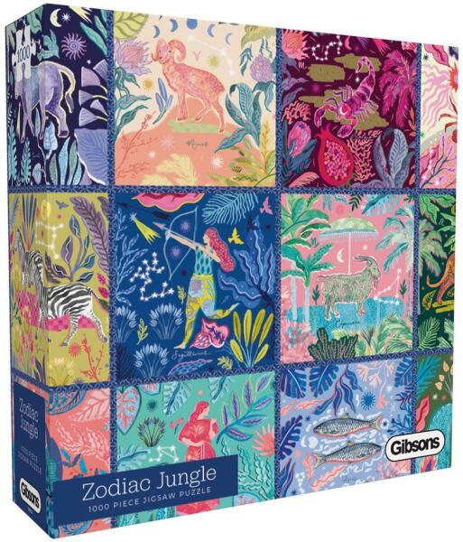 1000 darabos kirakó . Márka: Gibsons Művész: Emma Frances Grant Kirakott kép méret: 68 x 49 cm Doboz méret: 24 x 24 x 6 cm Eredeti cím: Zodiac Jungle GTIN: 5012269066227