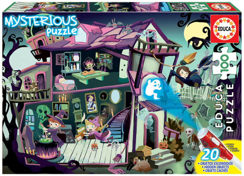 Az Educa gyerekeknek készült kirakói kiváló minőséget képviselnek széles választékban. A Educa 100 db-os puzzle - Mysterious Puzzle - Kísértetház nemcsak egy kirakó, hanem egy izgalmas játék is. A kirakóhoz tartozik egy láthatatlan tintával fogó toll , mellyel kedvünkre rajzolhatunk a kirakott képre. A rajzokat, valamint a képen elrejtett tárgyakat egy UV lámpa segítség