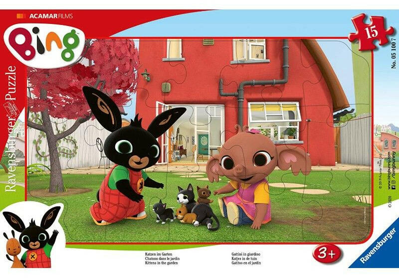 Ha gyermeke rajong a kis fekete nyusziért és barátaiért, akkor valósággal imádni fogja a Ravensburger 05100 puzzle - Bing a kertben címet viselő kirakót. A 15 alkotóelem ből álló kép ráadásul egy aranyos kerettel érkezik , mely megkönnyíti az elemek helyes elhelyezését a gyermekek számára. A nagyobb méretű darabok at az apró kezek is könnyedén kezelik, a kép színpomp