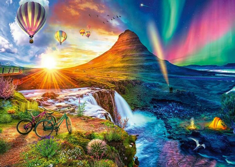 A Schmidt puzzle kiváló minőségű, német gyártmányú kirakó. A speciális matt lakk felhasználás következtében a kirakók fényvisszaverődés nélkül tárják elénk a szebbnél szebb képeket. A Schmidt 1000 db-os puzzle - Night and Day - Iceland, Lars Stewart - a kirakott képen egy csodálatos montázst láthatunk.