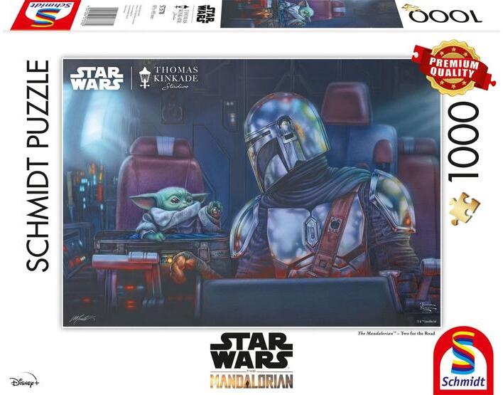 A Schmidt puzzle kiváló minőségű, német gyártmányú kirakó. A speciális matt lakk felhasználás következtében a kirakók fényvisszaverődés nélkül tárják elénk a szebbnél szebb képeket. Schmidt 1000 db-os puzzle - Star Wars The Mandalorian - Two for the Road című képen a Star Wars egyik ikonikus jelenete látható.