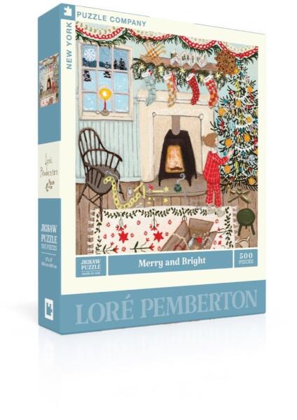 500 darabos kirakó . Márka: New York Puzzle Company Művész: Loré Pemberton Kirakott kép méret: 48,26 x 48,26 cm Doboz méret: 25,5 x 20,5 x 5 cm Eredeti cím: Merry and Bright GTIN: 840291701237