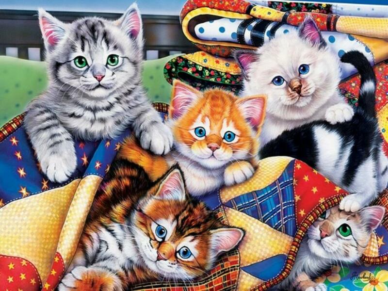 Az amerikai MasterPieces Puzzle Company gyönyörű és részletgazdag kirakókat gyárt különféle stílusokban és darabszámokban. A cég több világhírű márkával együttműködve az innováció és magas minőség mellett nagy gondot fordít az újrahasznosításra is. A MasterPieces 1000 db-os puzzle - Cozy Cats című képen lustálkodó cicák láthatók a takarók között. A doboz