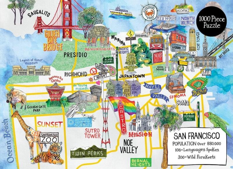 1000 darabos kirakó Gyárilag védőfólia és leragasztás nélkül készült. Márka: Galison Művész: Hennie Haworth Kirakott kép méret: 50.8 x 68.58 cm Doboz méret: 29 x 21,5 x 5,5 cm Eredeti cím: San Francisco GTIN: 9780735364639