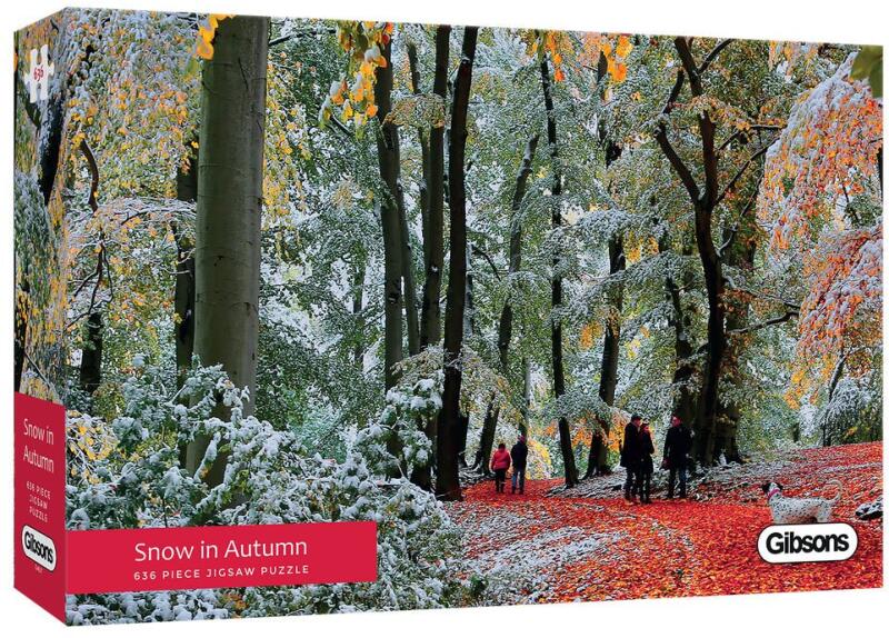 636 darabos kirakó Panoráma kép! Márka: Gibsons Művész: Veronika K Ko Kirakott kép méret: 69 x 32 cm Doboz méret: 31,5 x 21 x 5 cm Eredeti cím: Snow in Autumn GTIN: 5012269040579