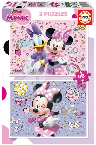 Puzzle Minnie a spanyol Educa műhelyéből örömet szerez minden képkirakózni vágyó gyermeknek már 4 éves kortól. A képeken a népszerű rajzfilm hősök , Minnie és Daisy ábrája jelenik meg. Puzzle csomag 2x48 darabos, így két különböző ábrát tudnak a gyerekek kirakni 28*20 cm méretekkel. Puzzle minőségi alapanyagból készült, megfelel a biztonsági feltételeknek - bizt