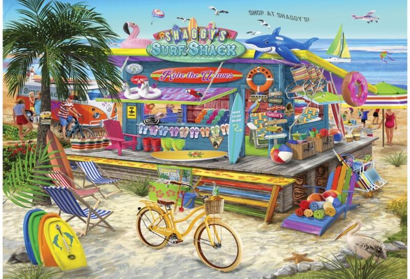 A francia Bluebird vállalat 2019-ben lépett piacra kiváló minőségű kirakóival, megfizethető áron. Fontos szempont számukra a környezettudatosság is, ezért kirakóik dobozait úgy tervezték, hogy minimális mennyiségű kartont használjanak fel a gyártás során. A Bluebird 1000 db-os puzzle - Shaggy's Surf Shack című képén egy menő tengerparty szörfös bár látható.