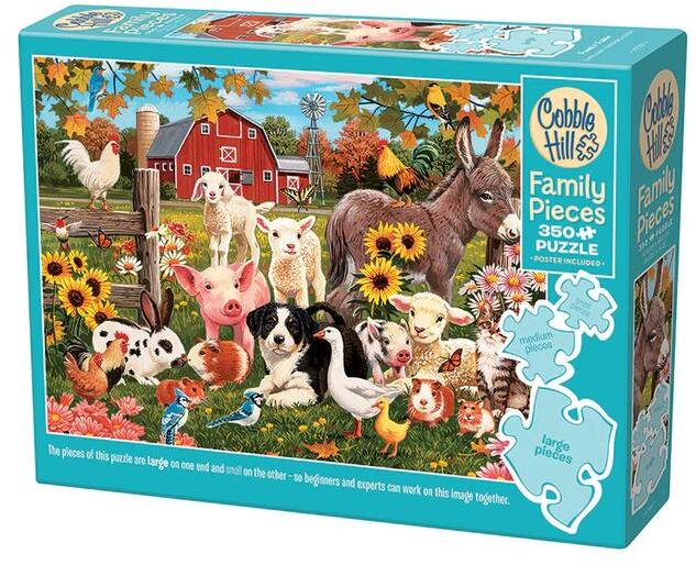 A kanadai Cobble Hill a nosztalgikus, színes, és mindemellett kiváló minőségű kirakókkal kívánja örvendetessé tenni a játék élményt kicsiknek és nagyoknak egyaránt. A Cobble Hill 350 db-os Family puzzle - Family Farm (47037) Ez a 350 darabos puzzle a "Family Farm" című képet ábrázolja, amely a vidék hangulatát és a családi gazdálkodást mindennapjait mutatja be. A puzzl