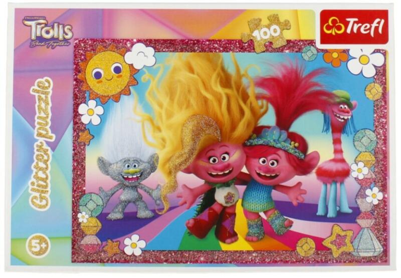 A Trefl kirakók kiváló minőségű, speciális fényvisszaverő papír felhasználásával, ökológiai anyagból készülnek, amely megkönnyíti az összeillesztést. A Csillám kirakó puzzle-darabjait és dobozát is arany csillám borítja. A Trefl 100 db-os puzzle - Trollok - A csapat című képen az amerikai számítógépes animációs zenés vígjáték aranyos szereplői láthatók.