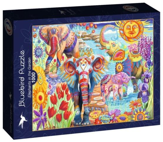 A francia Bluebird vállalat 2019-ben lépett piacra kiváló minőségű kirakóival, megfizethető áron. Fontos szempont számukra a környezettudatosság is, ezért kirakóik dobozait úgy tervezték, hogy minimális mennyiségű kartont használjanak fel a gyártás során. A Bluebird 1000 db-os puzzle - Elephants in the Garden című képe igazán sokszínűre sikerült. A színpompás virá