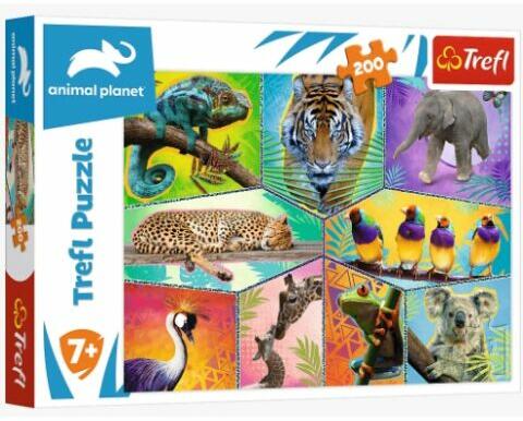 Állatok világa - Puzzle 200 db Trefl Az Állatok világa - Puzzle 200 db Trefl egy kihagyhatatlan játék minden állatbarát számára. A 200 darab apró puzzle darabka összerakása során bejárhatjuk az állatvilág lenyűgöző környezetét. A képen számos izgalmas állat látható, mint például a rejtőzködő kaméleon, a hatalmas tigris, az elefánt, a gyors és elegáns gepárd, a