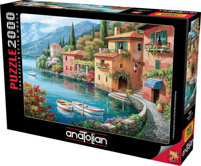 Az Anatolian folyamatosan figyelemmel kíséri az új technológiákat, puzzle alapanyagforrásokat, a modern művészeti koncepciókat és a fogyasztók ízlését. Ennek alapján minden korosztály számára megfelelő kirakókat gyárt. Az Anatolian 2000 db-os puzzle - Villagio Dal Lago című képén Sung Kim alkotásában egy idilli hegyvidéki tópart látható, villákkal, csónakokkal.